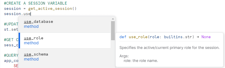 Since native Streamlit apps are objects in Snowflake, they behave like all other objects in Snowflake from an ownership and privileges standpoint. As such, when running the app, any queries against Snowflake will be executed by the app owner role, regardless of the current user’s role. Being a newer Streamlit developer, I was initially confused and frustrated with this distinction. The only supported session connection method as of the time of this article is get_current_session. When using this connection method, session.get_current_role returns the user’s current role, not the app owner role used to execute queries against Snowflake.