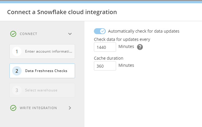 Once the authentication is changed and the account is connected, the data freshness check options appear.