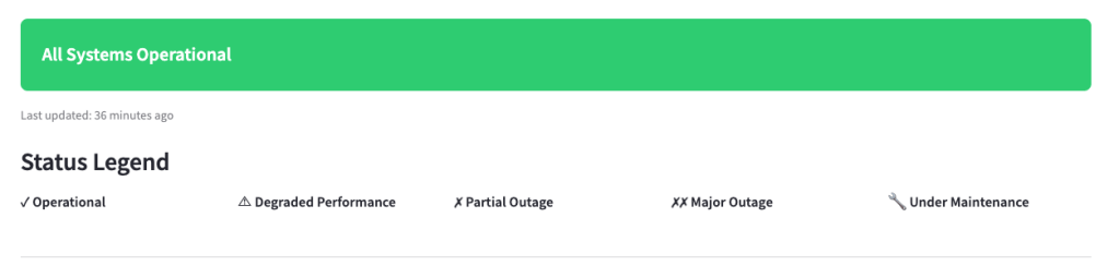 One difference from the official status page are the status indicator tool tips. Hover over an icon to details on the status, which component you’re on, and the last updated timestamp.